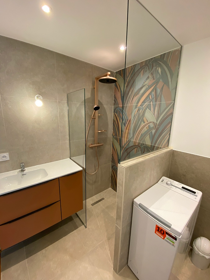 - installation du mobilier et des accessoires : meubles, rangements, miroirs, sèche-serviettes, etc.